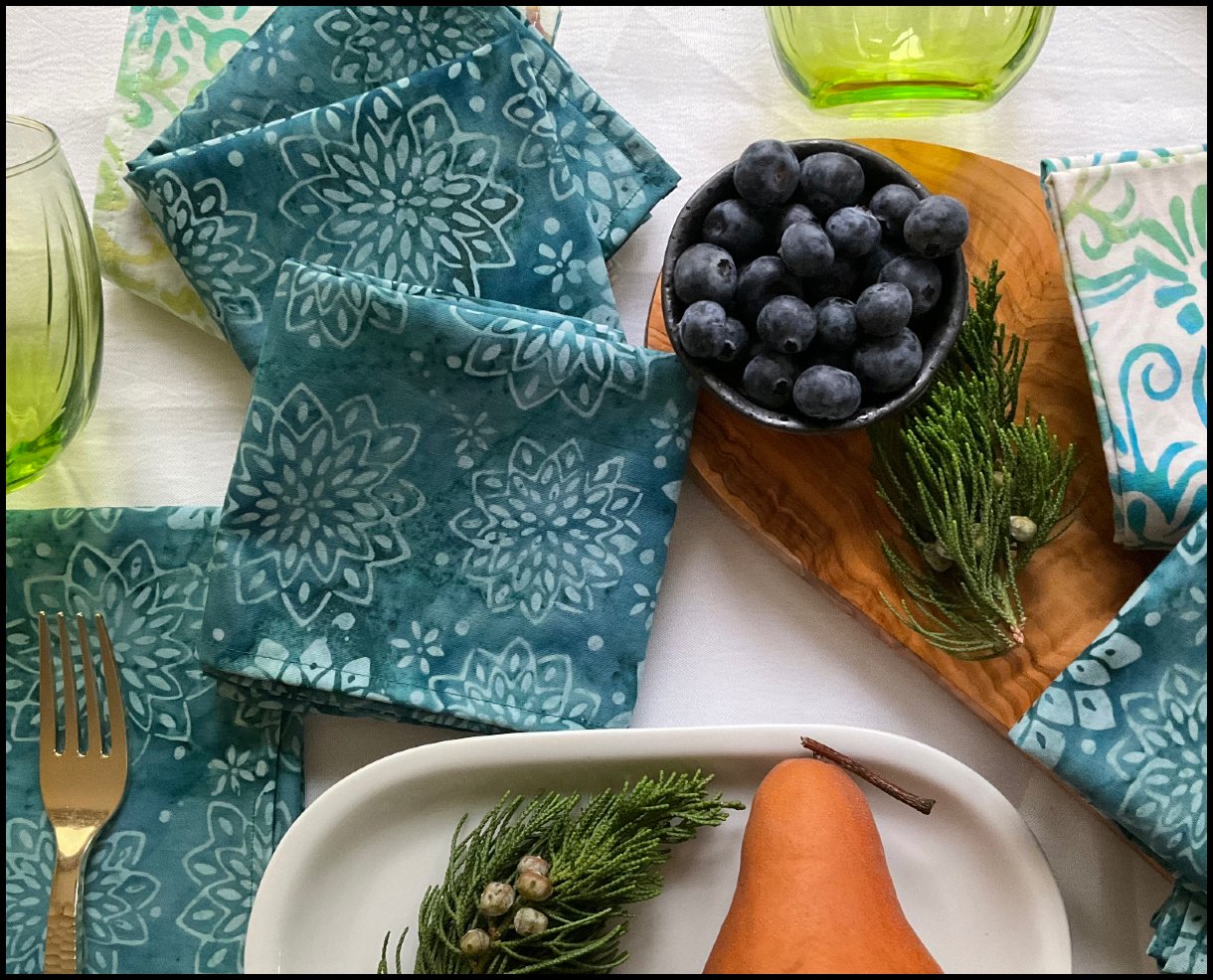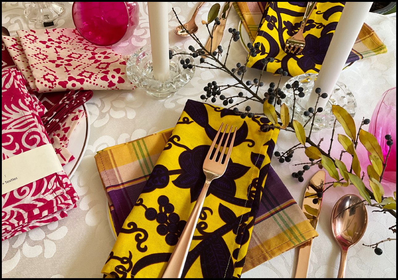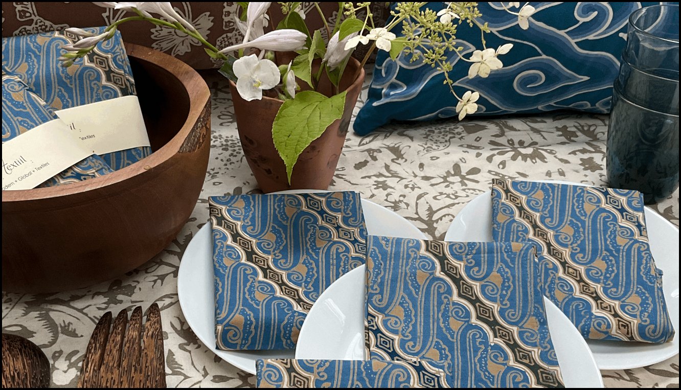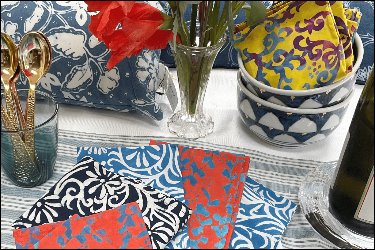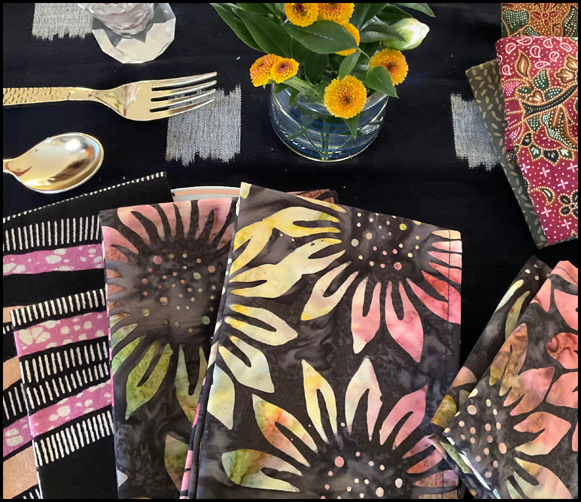 See our colorful selection of napkins, table runners, and batik and lurik accent pillows.