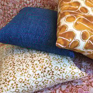 In batik, a block print motif often looks simple. But, this is deceptive. Artfully done, these patterns are born of a time-consuming, multi-step process that requires exquisite attention to detail. At Textiil, our goods – pillows and table linens – honor this. The cloth is made in small batches as we work to find new motifs and colors that will maintain the heritage process and creative integrity, but also resonate in the western marketplace. And we do produce multiples in order to bring to market a selections of goods more affordable than the incredibly detailed one-of-a-kind tulis batiks. What results are crisp, fresh designs with gentle variance.
